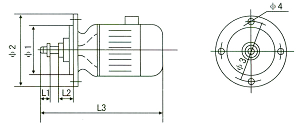 型號/項目 功率KW 軸伸花鍵 L1 L2 L3 Φ1 Φ2 Φ3 Φ4